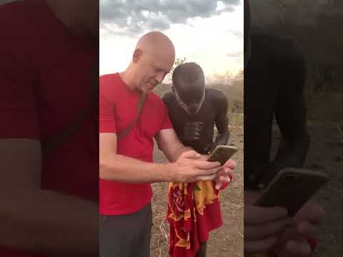 El chamán de una tribu ve una foto de la nieve por primera vez