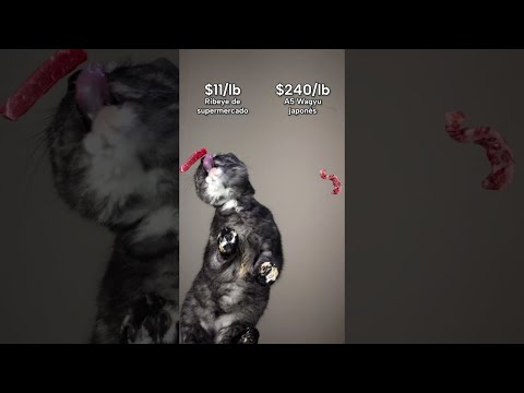 Un gato probando la carne más cara del mundo, ¿la apreciará?
