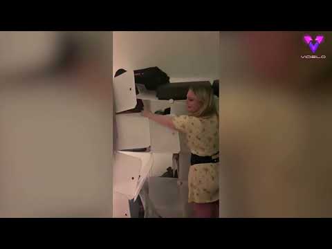 Una mujer fue filmada en medio de un pánico desternillante cuando su nuevo armario empotrado se derrumbó a su alrededor