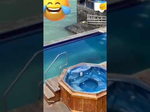 Una foca sale del mar para bañarse en una piscina y echar a un hombre de su tumbona